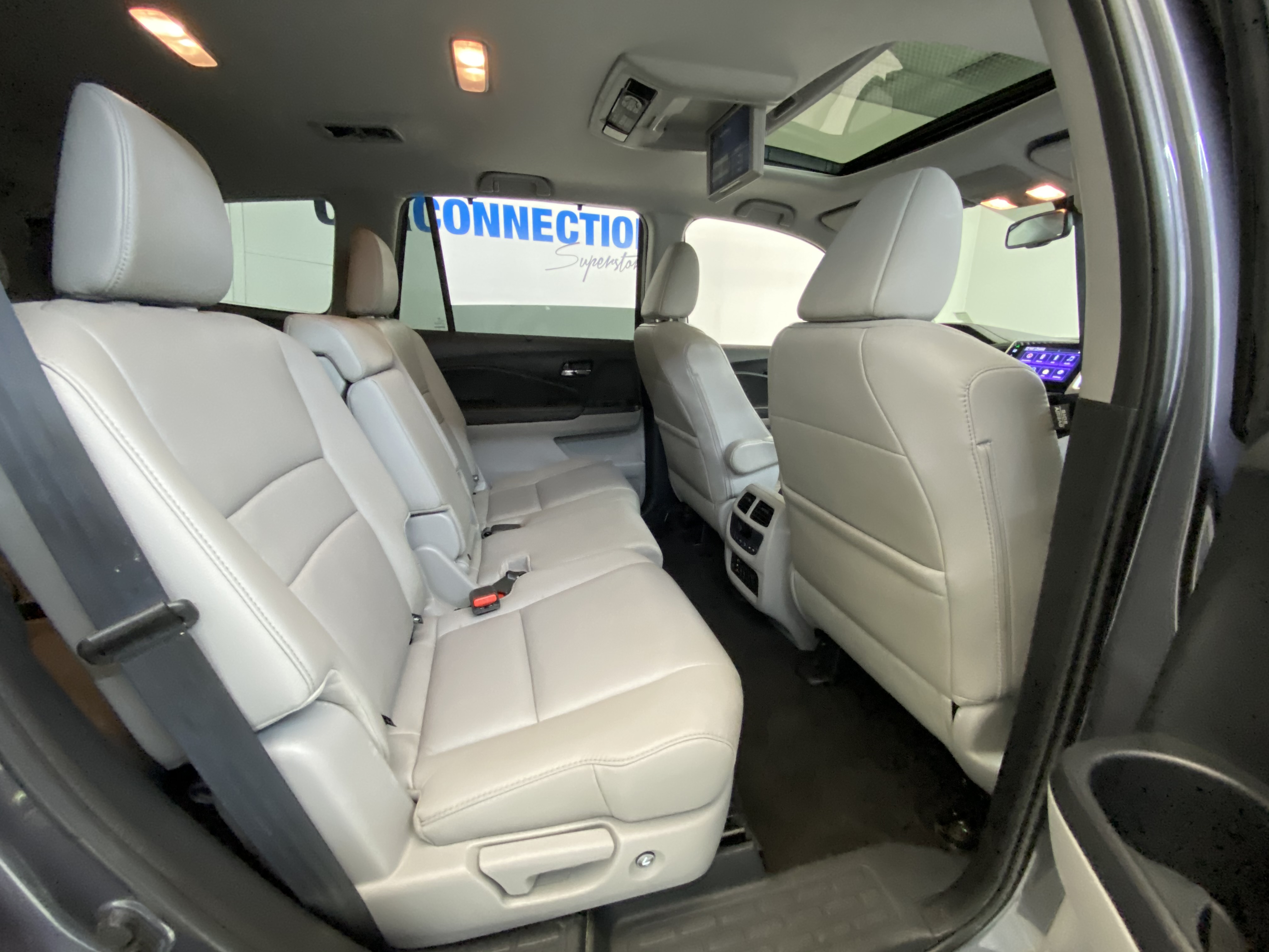 Full Floor Console w/Covered Storage, Mini Overhead Console w/Storage, Conversation Mirror, 3 12V DC Power Outlets and 1 AC Power Outlet