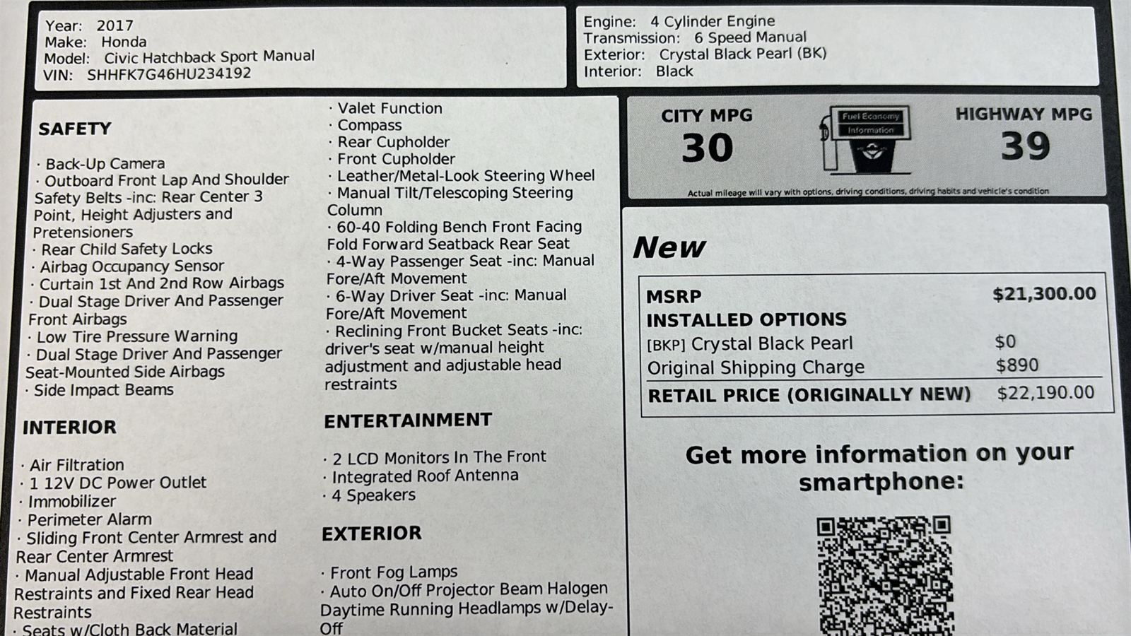 HONDA CIVIC HATCHBACK 2017