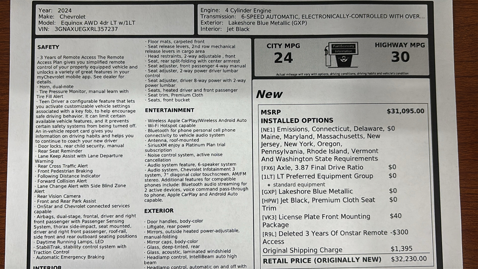 | EPA FUEL ECONOMY EST - HWY | 30 MPG |